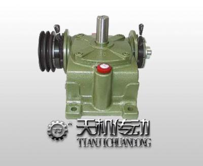 天機傳動電磁離合剎車減速機即蝸輪減速機附剎車離合器TJ-BKVCS型為臥式安裝型,輸出軸朝上。由一個DC24V干式電磁離合器、一個DC24V干式電磁制動器、一個單極臥式蝸輪蝸桿減速機構(gòu)成,構(gòu)成多用途、多功能、適用性強的一體化組合。用皮帶輪與驅(qū)動(電機)連接,皮帶輪裝置干式電磁離合器一端,與電樞板聯(lián)接在一起并固定輸入軸上。